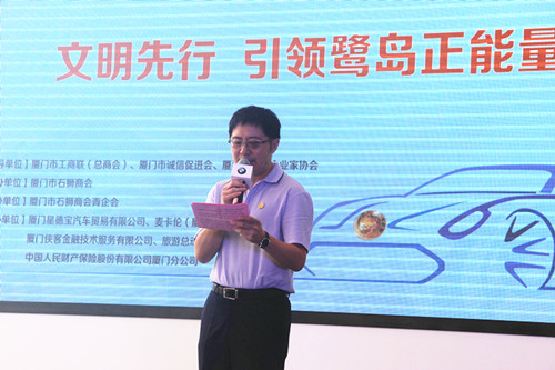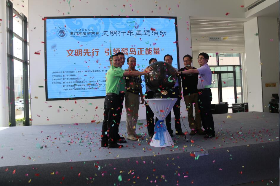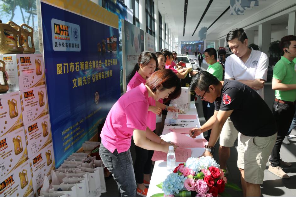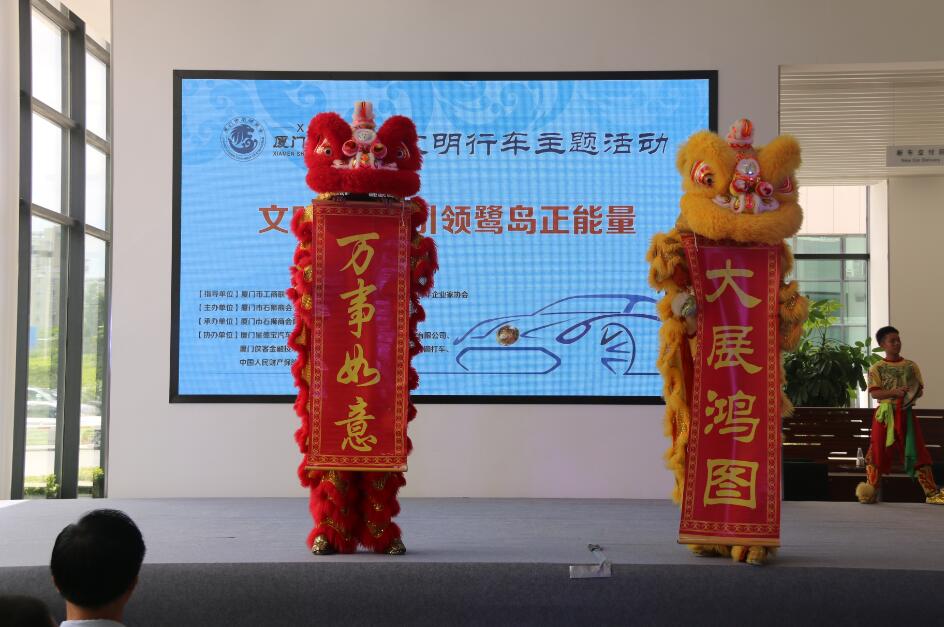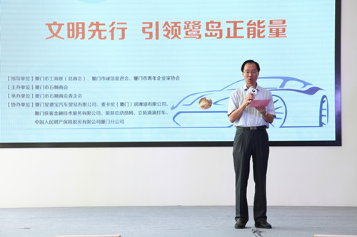 2015年8月22日上午,“文明先行 引领鹭岛正能量”——厦门市石狮商会“文明行车”主题活动在厦门星德宝汽车隆重举行。厦门市人大常委会原副主任、厦门仲裁委主任、厦门市诚信促进会会长汪兴裕,厦门市工商联驻会副主席、厦门总商会常务副会长董仁生,厦门市青年企业家协会常务副会长周奕麟等莅临活动现场指导,厦门市泉州商会会长、厦门市石狮商会监事长李文派,厦门市石狮商会常务副会长兼秘书长王东红,副会长兼青企会主任姜盈谦,副会长兼青企会副主任蔡乃安,驻会副会长兼常务副秘书长陈少华等商会领导出席此次活动。